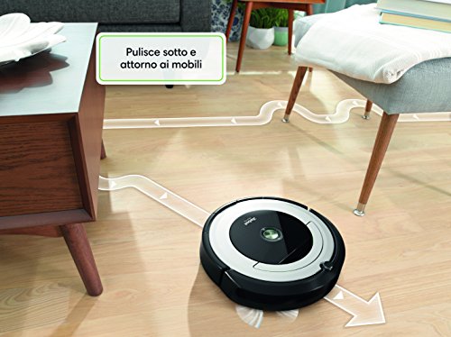 - La presenza di una serie completa di sensori intelligenti gli consente di pulire sotto ed attorno ai mobili, senza peraltro trascurare gli angoli